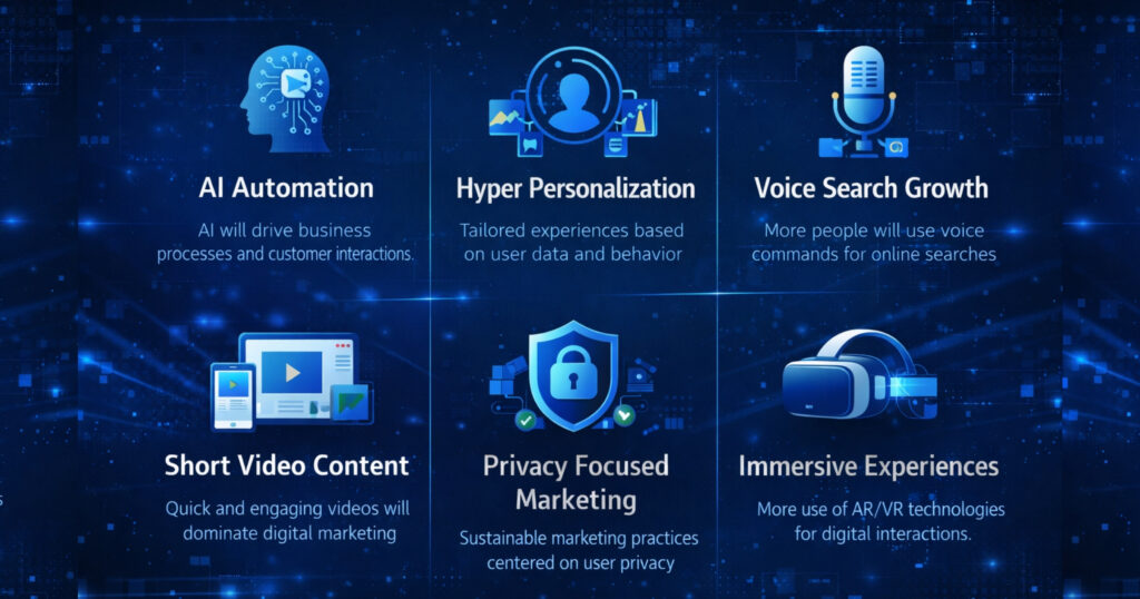 The digital landscape is still rapidly changing. New technologies and shifting consumer expectations are influencing the way business is conducted online. Artificial intelligence, automation, and immersive experiences are going to be major drivers of innovation. Companies that adapt early will get a strong advantage. The top digital trends highlighted here show us where technology is going in the future. Businesses should now start to prepare for the future to remain competitive. Organizations that adopt the best digital trends of 2026 will be able to build better digital strategies and create better customer experiences.